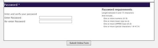 The Password section is where you can enter and verify your password.  The requirements are listed on the right and must be adhered to.